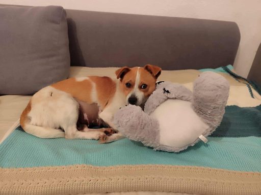 After her neutering, Bubi stayed with her rescuer to recover, and she’s shown just how precious she is. She chooses the sofa as her safe place and only gets down for food or the toilet… almost as if she’s scared that if she moves, she might lose the comfort she’s finally found.